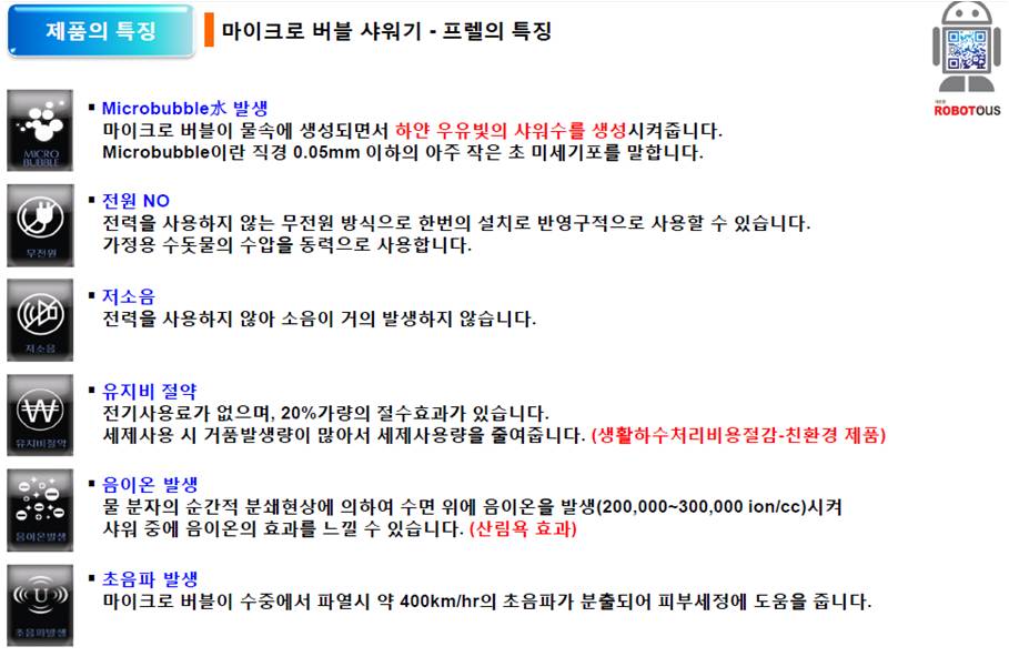 친환경절수 마이크로 버블샤워기 RTF-N01 RTF-B01 RTF-B01 제품명 FRELLE Bubblemate 품번 RTF-B01 제품설명 마이크로버블이 수중에서 파열시 약400km/hr의 초음파가 분출되어 피부세정에 도움을 줌 인쇄하기 JPG도면 다운로드 CAD 다운로드 제품설치방법 제품사양보기 리스트
