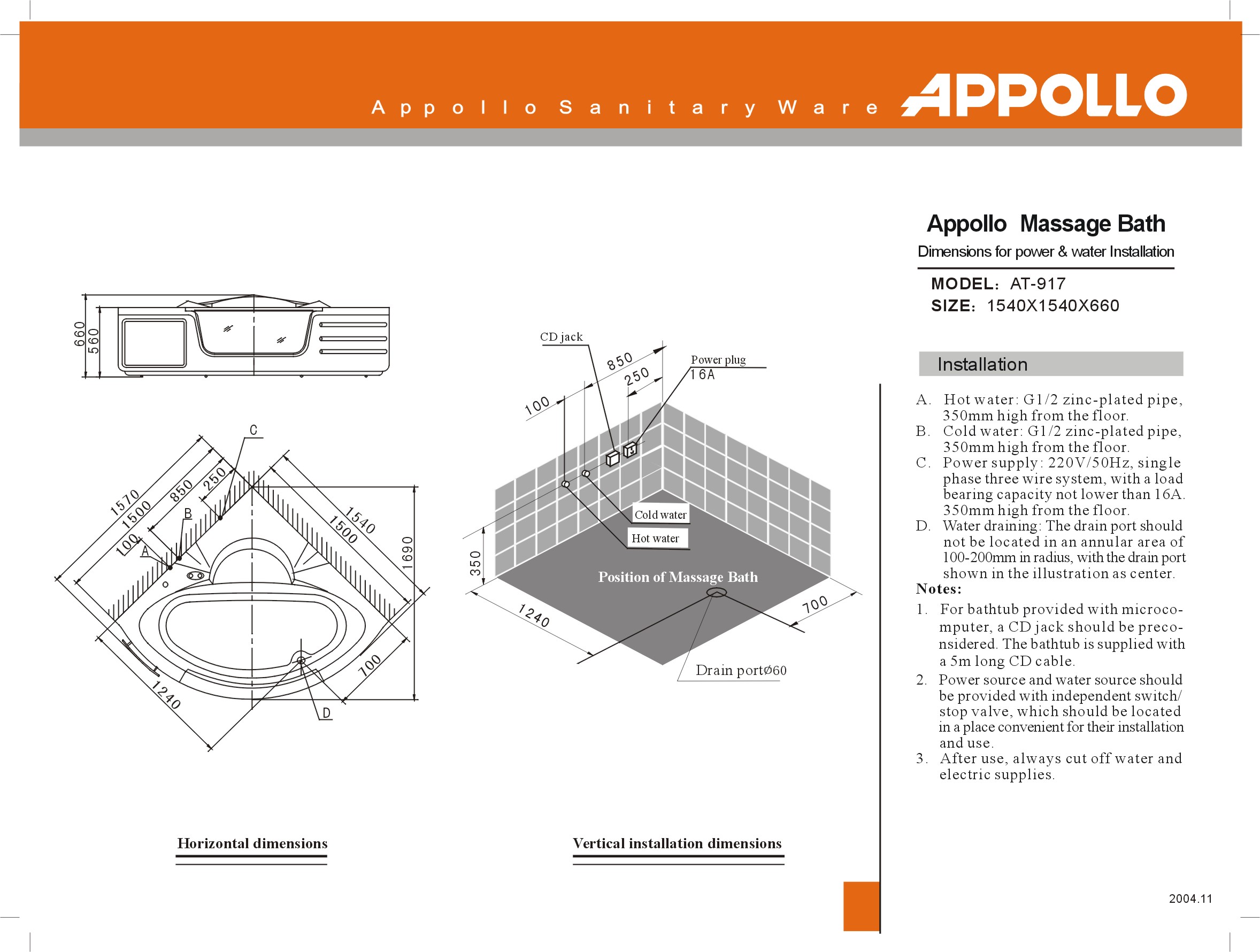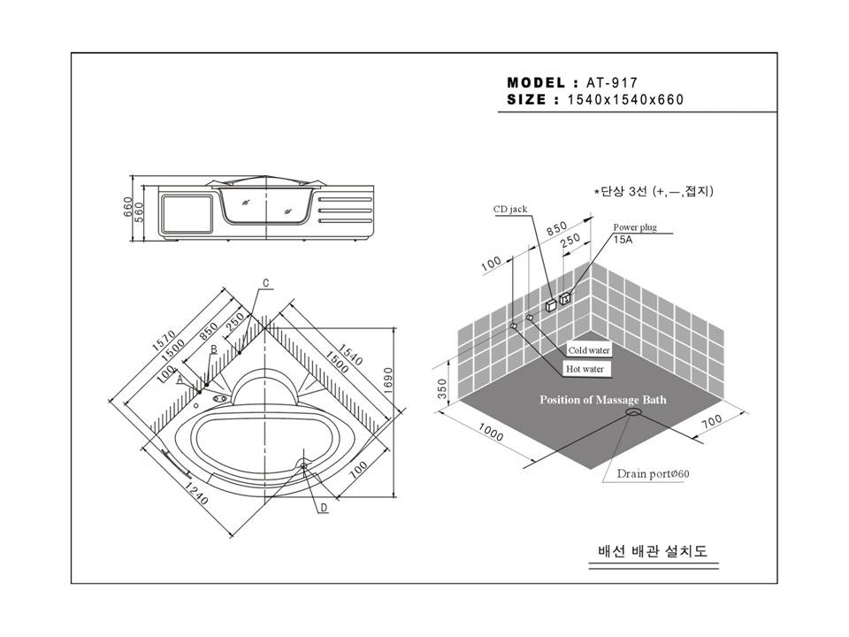 월풀욕조 코너월풀 AT-917 AT-920 AT-936 AT-938 AT-949 AT-950 AT-980 M-805 M-1202 #SOLE #AMICO # ETERNO # PASSIONE AT-917 제품명 AT-917 품번 AT-917 제품설명 코너형 월풀욕조(건식) 인쇄하기 JPG도면 다운로드 CAD 다운로드 제품설치방법 제품사양보기 Size / 1540*1540*600 리스트